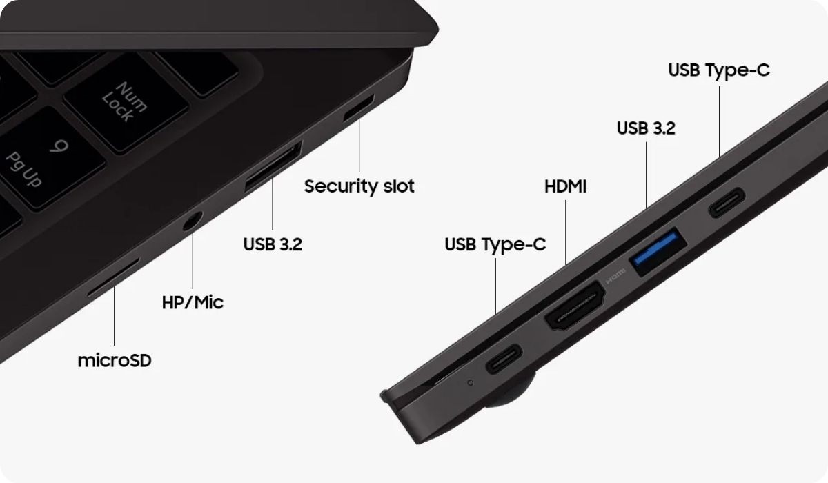 Galaxy Book2 ma wytrzymałą baterię 54 Wh i ładowarkę, aby utrzymać urządzenie w ruchu. Ta mała i kompaktowa ładowarka to superprzenośne akcesorium, a także jest kompatybilna z innymi urządzeniami Galaxy dzięki kablowi USB typu C.
